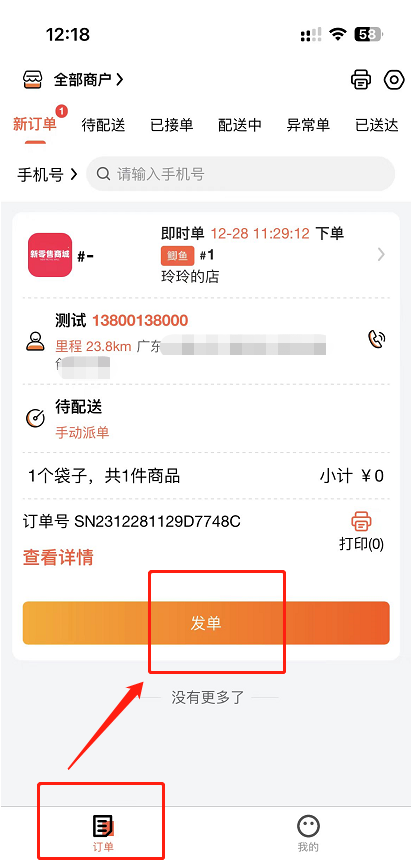 鲫鱼APP前端接收到订单,点击发单(手动发单)